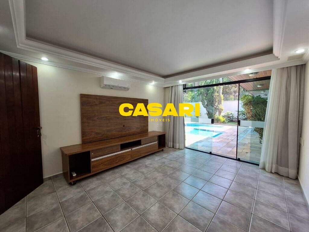 Casa para alugar com 4 dormitórios no Parque Anchieta, São Bernardo do Campo, com 597 m². São 3 suítes climatizadas e mais um dormitório com ar-condicionado, além de sala de estar com lareira e sala de TV com ar-condicionado. Conta com lavabo, sala de jantar espaçosa, cozinha prática, lavanderia, despensa e dependência de empregada com banheiro. A área de lazer é completa, com piscina aquecida por energia solar, churrasqueira, sauna com banheiro e ducha, campo de futebol e horta-pomar. Garagem ampla para 6 a 9 veículos. Localizado em bairro alto padrão com segurança e fácil acesso à Via Anchieta. Um imóvel perfeito para quem busca conforto e estilo.