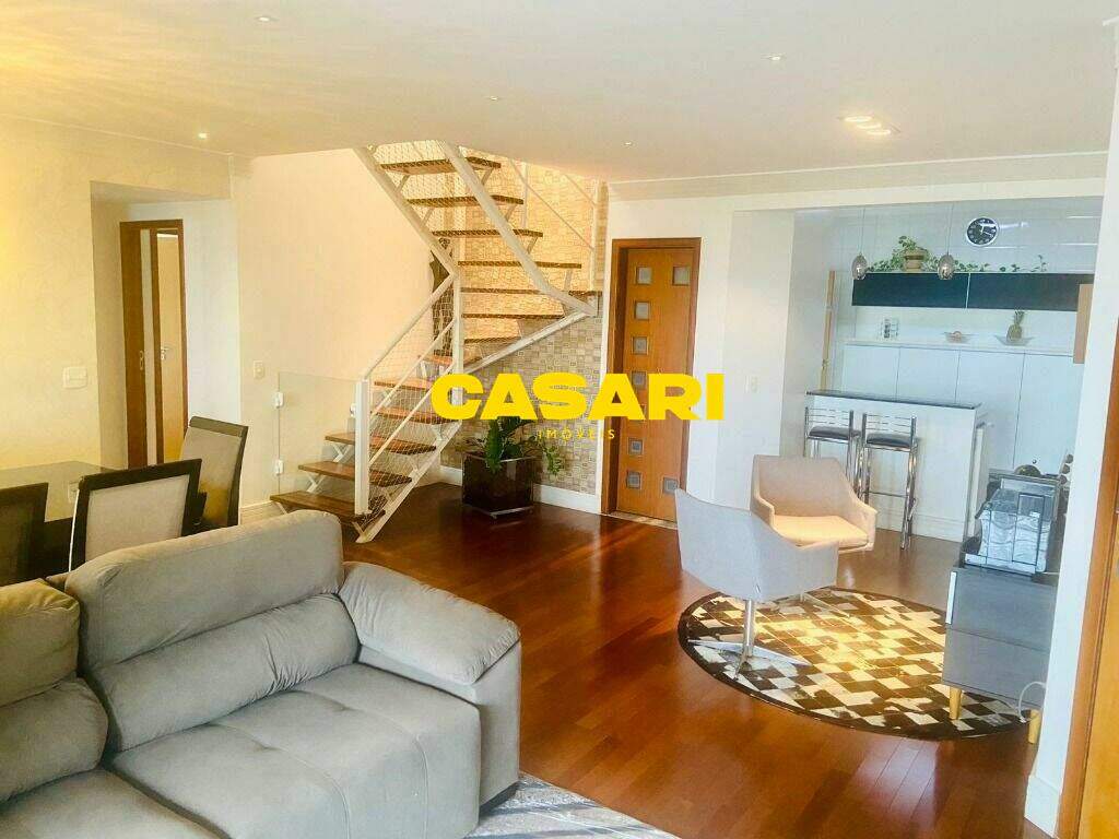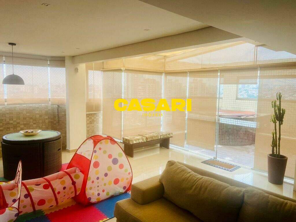 Cobertura à venda no Jardim do Mar, São Bernardo do Campo, com 240 m², 3 suítes (sendo 1 master), 4 banheiros e lavabo. Sala ampla para jantar e TV, acabamento em porcelanato, assoalho de madeira e cerâmica. Conta com ar condicionado, entrada privativa e vista para o Parque Rafael Lazzuri. Condomínio com lazer completo: piscina, academia, sauna, salão de festas, salão de jogos e churrasqueira. Localização privilegiada, próxima à Avenida Kennedy, com fácil acesso a bares, restaurantes, hipermercados e aos shoppings São Bernardo Plaza, Golden Square e Shopping SBC. São 3 vagas cobertas de garagem. Aceita permuta por apartamento no Centro.