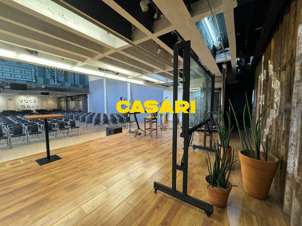 Térreo: Estacionamento para 35 carros, pátio, copa com depósito, recepção, sala de amamentação, banheiros acessíveis, salão de 450 m², 3 salas de vidro, lavanderia, cozinha ampla com dois ambientes e banheiro de serviço.