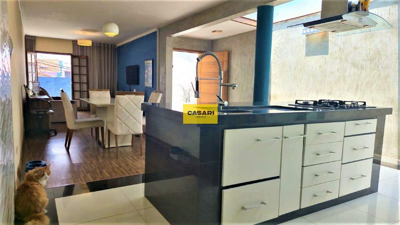 Sobrado de 130 m² no bairro Assunção, São Bernardo do Campo, com 1 dormitório sendo uma suíte planejada, cozinha em conceito aberto totalmente equipada com ilha em granito e acabamento de primeira linha. Sala com piso laminado importado e varanda, lavabo, área de serviço individual e corredor lateral. Conta com 2 vagas de garagem cobertas. Imóvel moderno, com ambientes bem distribuídos e excelente localização, próximo a comércios, serviços e vias de fácil acesso.