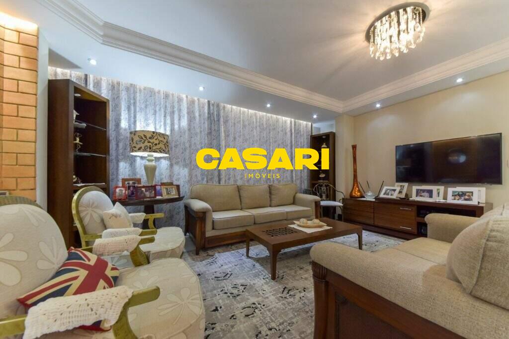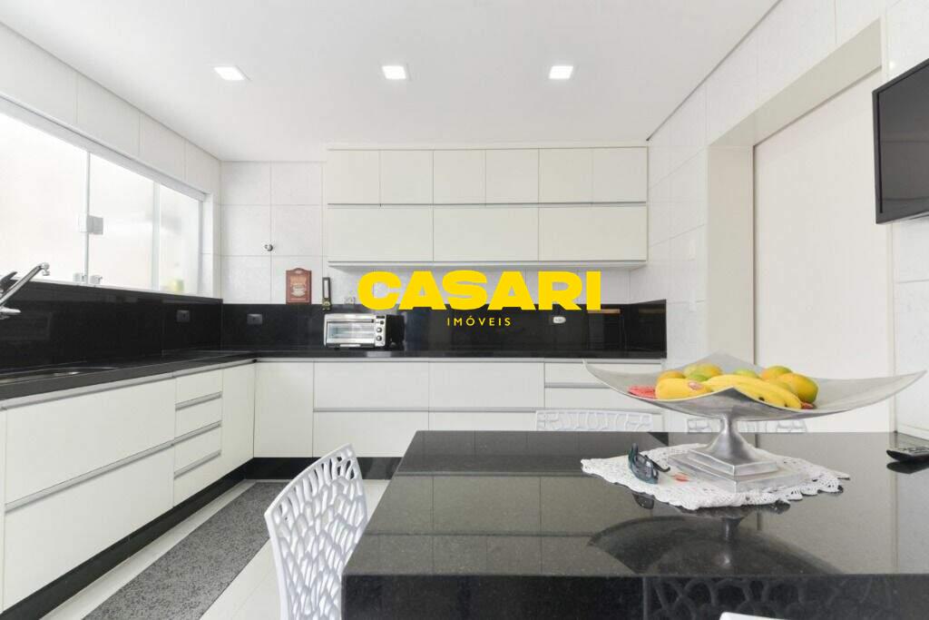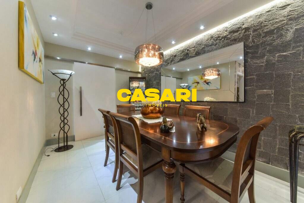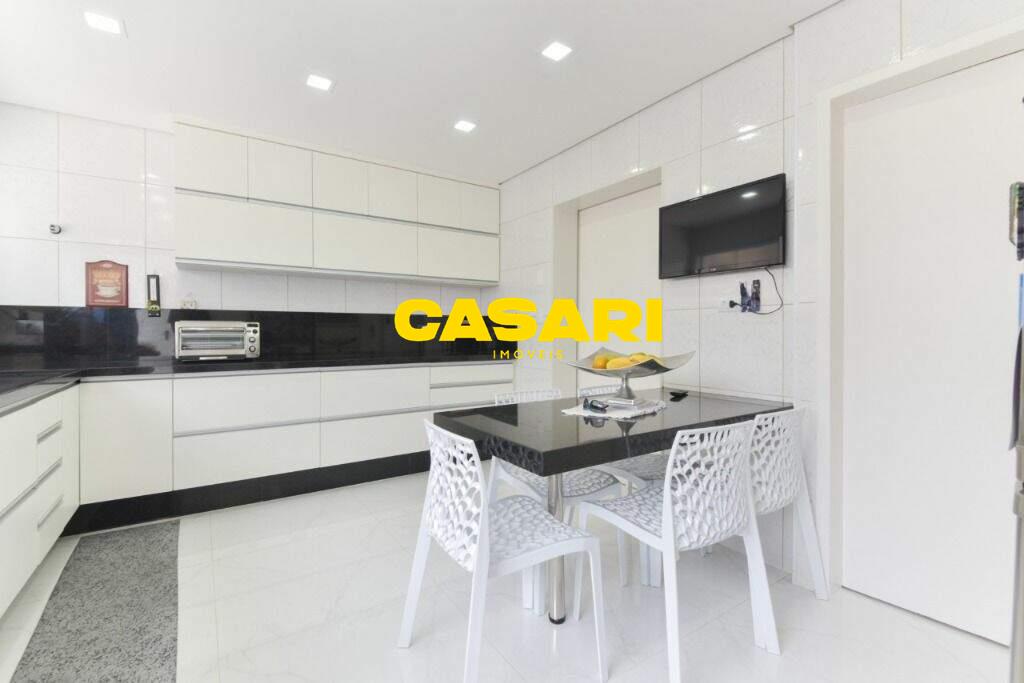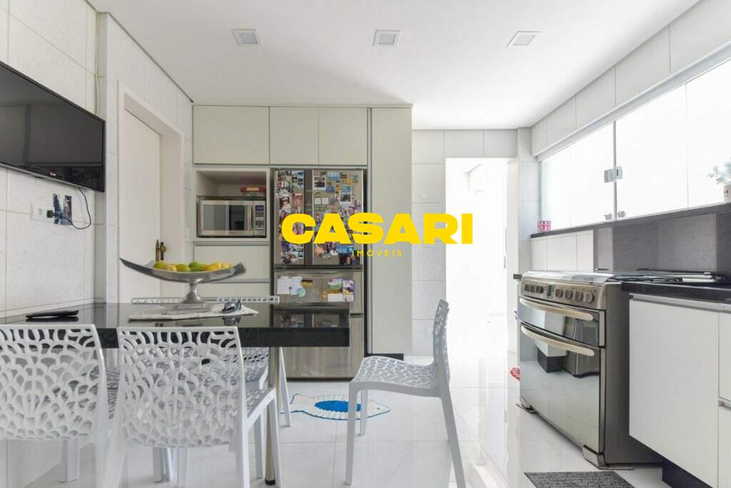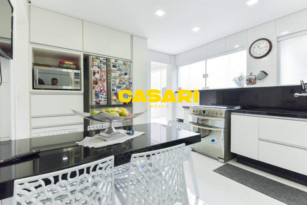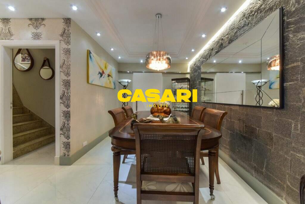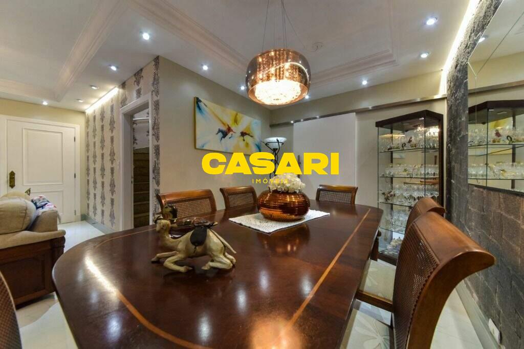 Maravilhoso sobrado à venda no bairro Nova Petrópolis, em São Bernardo do Campo, com 243 m² de área construída. Localizado em rua tranquila, sem saída, com guarita e vigilância, o imóvel fica próximo às Avenidas Francisco Prestes Maia e Wallace Simonsen, oferecendo fácil acesso a uma ampla variedade de comércios, padarias, restaurantes, farmácias, escolas e transporte público, além de estar a poucos minutos da Via Anchieta. O sobrado impressiona pela amplitude e sofisticação, com sala para três ambientes – estar, jantar e lareira – finamente decorada, equipada com móveis de excelente padrão, TV e rack. Conta ainda com lavabo planejado, cozinha espaçosa com armários de altíssima qualidade, bancada e mesa em granito, equipada com fogão de 6 bocas, refrigerador, micro-ondas e forno elétrico. Lavanderia com planejados e máquina de lavar inclusa. São três suítes confortáveis, todas com armários planejados. Uma delas conta com biblioteca sob medida e banheiro com box amplo. A segunda suíte oferece planejados em duas paredes, duas camas de solteiro com cabeceiras especiais e acesso ao terraço. A suíte master é composta por três ambientes: dormitório com cama king size, painel para TV e acesso ao terraço; amplo closet com armários planejados para o casal; e banheiro completo com duas pias em granito, armários e espelhos independentes. Nos fundos, há uma área gourmet encantadora, equipada com churrasqueira, cooktop a gás, pia em granito, refrigerador, micro-ondas, TV, armários planejados e espaço para armazenar mesas dobráveis. A garagem é coberta, com capacidade para três carros grandes e portão eletrônico.