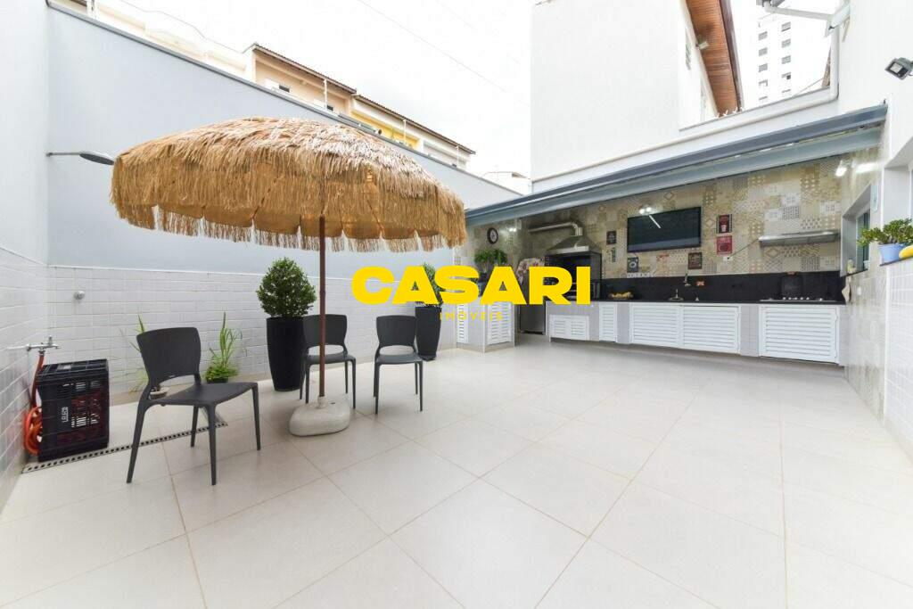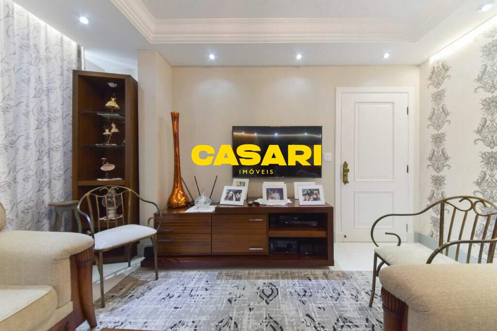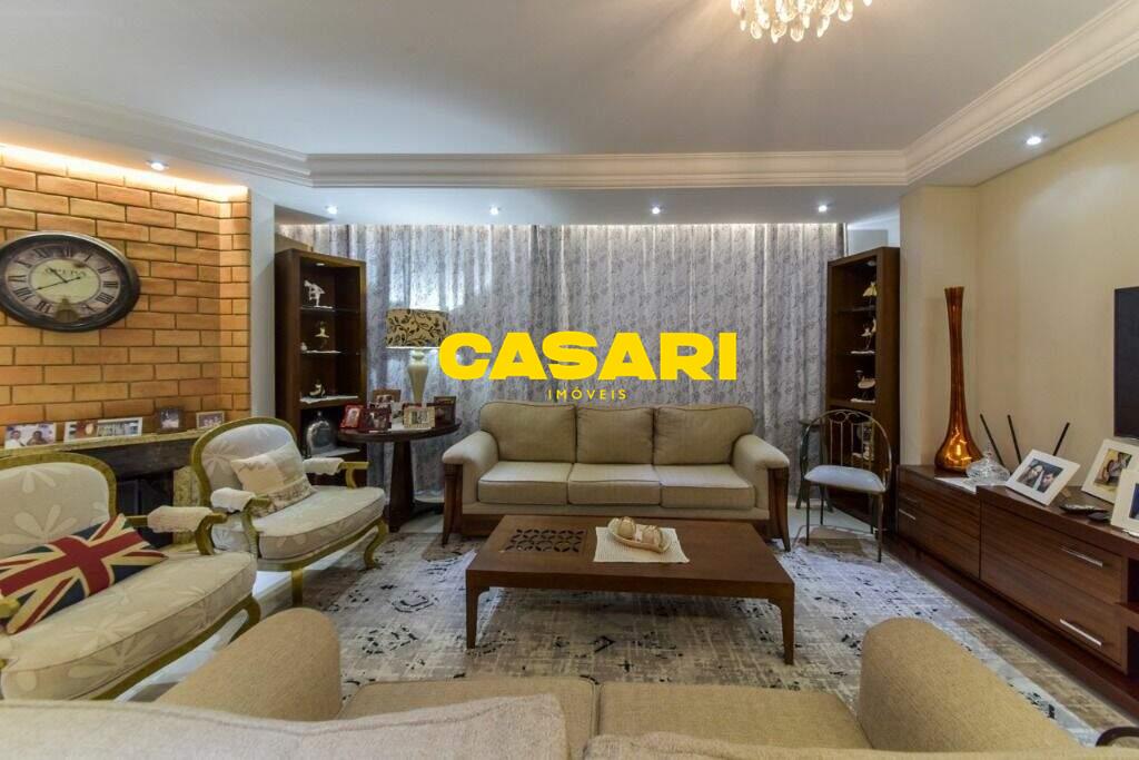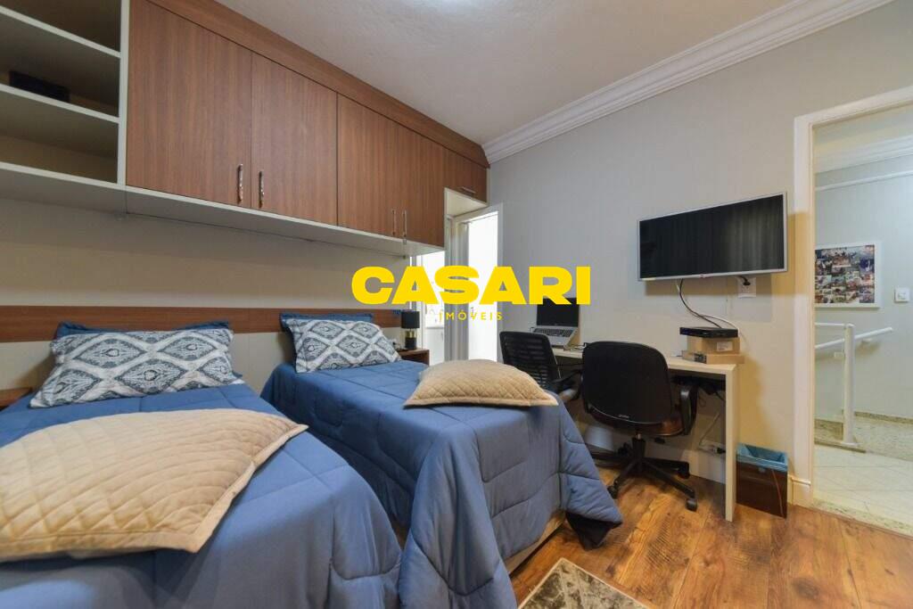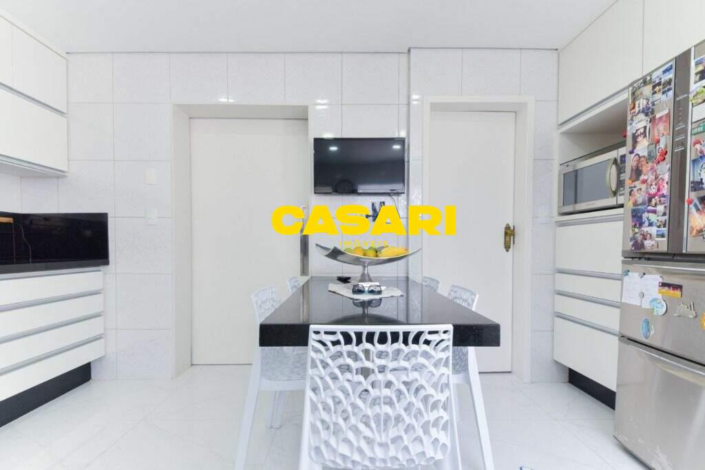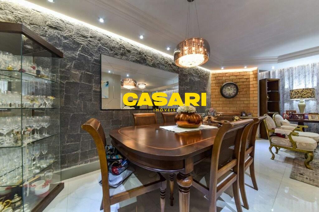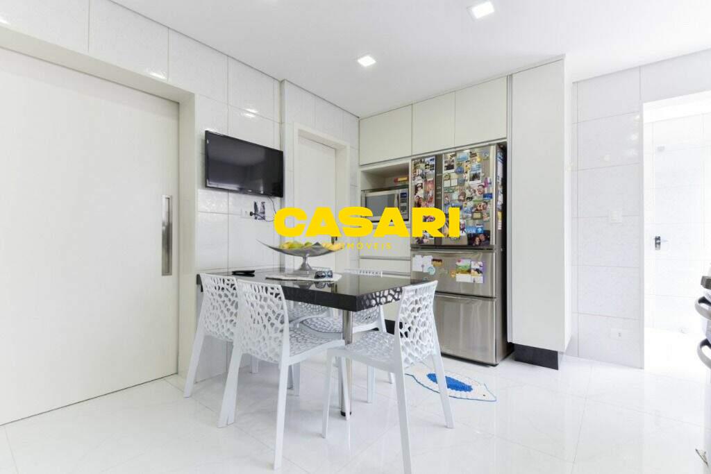 Maravilhoso sobrado à venda no bairro Nova Petrópolis, em São Bernardo do Campo, com 243 m² de área construída. Localizado em rua tranquila, sem saída, com guarita e vigilância, o imóvel fica próximo às Avenidas Francisco Prestes Maia e Wallace Simonsen, oferecendo fácil acesso a uma ampla variedade de comércios, padarias, restaurantes, farmácias, escolas e transporte público, além de estar a poucos minutos da Via Anchieta. O sobrado impressiona pela amplitude e sofisticação, com sala para três ambientes – estar, jantar e lareira – finamente decorada, equipada com móveis de excelente padrão, TV e rack. Conta ainda com lavabo planejado, cozinha espaçosa com armários de altíssima qualidade, bancada e mesa em granito, equipada com fogão de 6 bocas, refrigerador, micro-ondas e forno elétrico. Lavanderia com planejados e máquina de lavar inclusa. São três suítes confortáveis, todas com armários planejados. Uma delas conta com biblioteca sob medida e banheiro com box amplo. A segunda suíte oferece planejados em duas paredes, duas camas de solteiro com cabeceiras especiais e acesso ao terraço. A suíte master é composta por três ambientes: dormitório com cama king size, painel para TV e acesso ao terraço; amplo closet com armários planejados para o casal; e banheiro completo com duas pias em granito, armários e espelhos independentes. Nos fundos, há uma área gourmet encantadora, equipada com churrasqueira, cooktop a gás, pia em granito, refrigerador, micro-ondas, TV, armários planejados e espaço para armazenar mesas dobráveis. A garagem é coberta, com capacidade para três carros grandes e portão eletrônico.