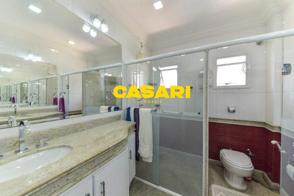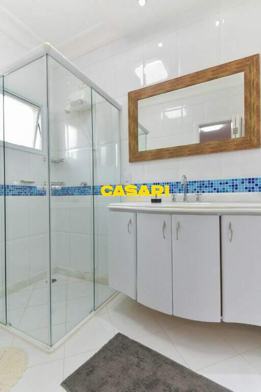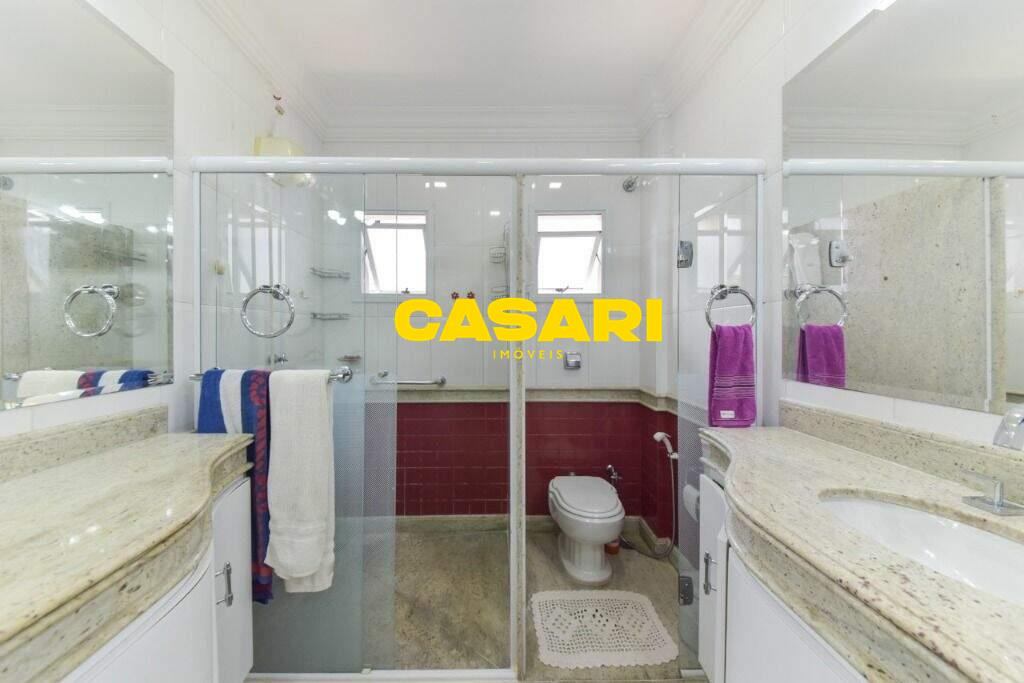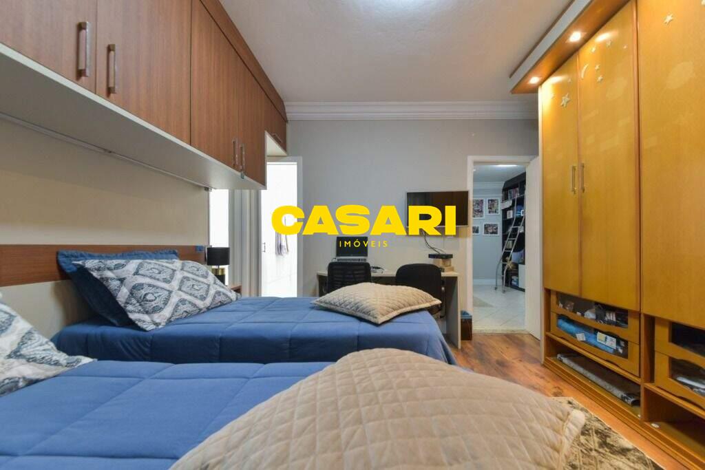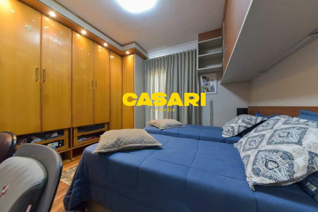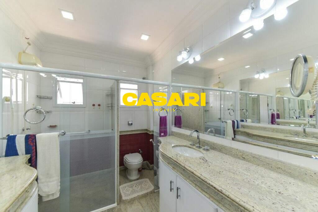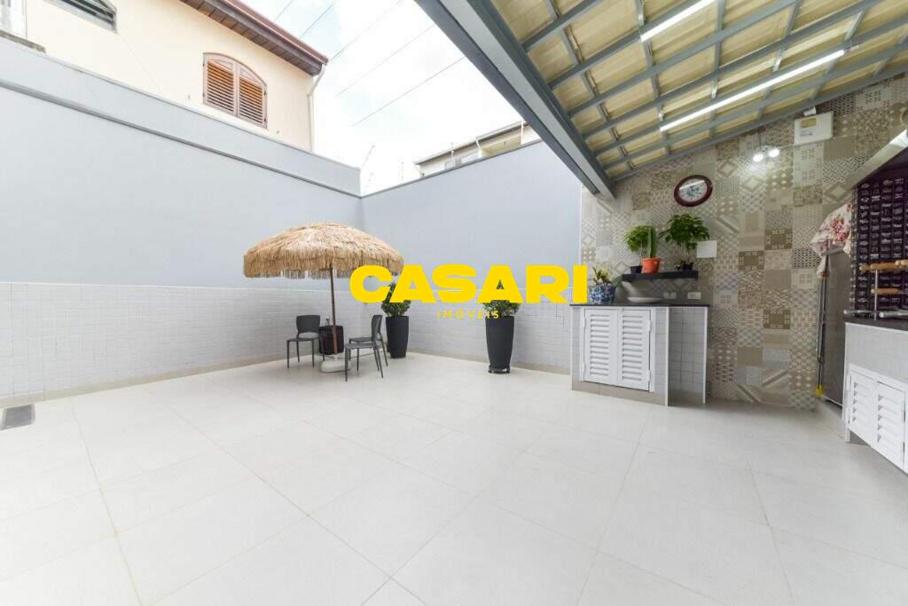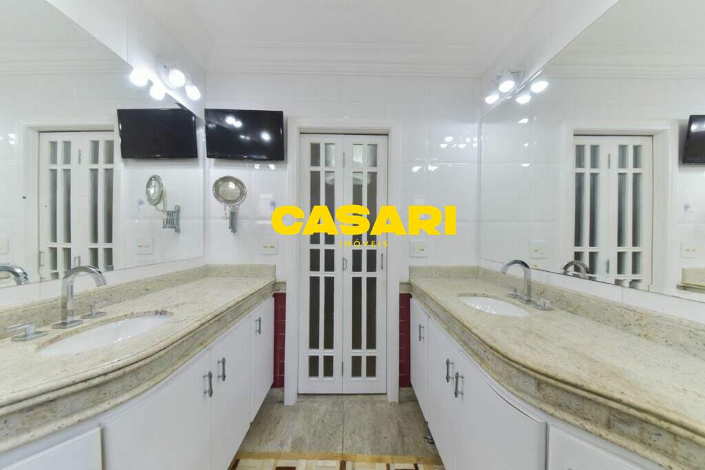 Maravilhoso sobrado à venda no bairro Nova Petrópolis, em São Bernardo do Campo, com 243 m² de área construída. Localizado em rua tranquila, sem saída, com guarita e vigilância, o imóvel fica próximo às Avenidas Francisco Prestes Maia e Wallace Simonsen, oferecendo fácil acesso a uma ampla variedade de comércios, padarias, restaurantes, farmácias, escolas e transporte público, além de estar a poucos minutos da Via Anchieta. O sobrado impressiona pela amplitude e sofisticação, com sala para três ambientes – estar, jantar e lareira – finamente decorada, equipada com móveis de excelente padrão, TV e rack. Conta ainda com lavabo planejado, cozinha espaçosa com armários de altíssima qualidade, bancada e mesa em granito, equipada com fogão de 6 bocas, refrigerador, micro-ondas e forno elétrico. Lavanderia com planejados e máquina de lavar inclusa. São três suítes confortáveis, todas com armários planejados. Uma delas conta com biblioteca sob medida e banheiro com box amplo. A segunda suíte oferece planejados em duas paredes, duas camas de solteiro com cabeceiras especiais e acesso ao terraço. A suíte master é composta por três ambientes: dormitório com cama king size, painel para TV e acesso ao terraço; amplo closet com armários planejados para o casal; e banheiro completo com duas pias em granito, armários e espelhos independentes. Nos fundos, há uma área gourmet encantadora, equipada com churrasqueira, cooktop a gás, pia em granito, refrigerador, micro-ondas, TV, armários planejados e espaço para armazenar mesas dobráveis. A garagem é coberta, com capacidade para três carros grandes e portão eletrônico.